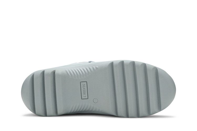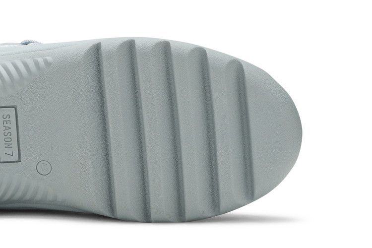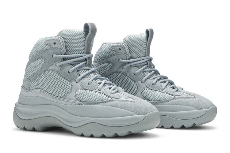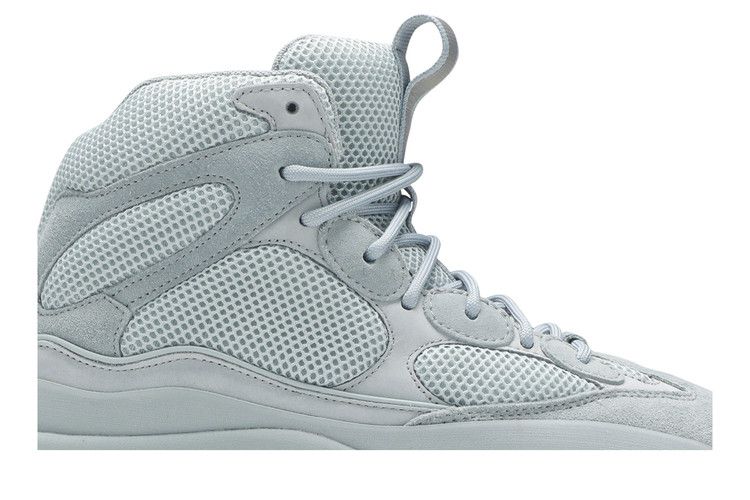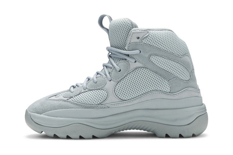 The Yeezy Desert Boot Season 7 House Blue features a pale blue-gray mesh upper with leather and suede overlays in varying gray shades. Rope laces secure a padded tongue for...
