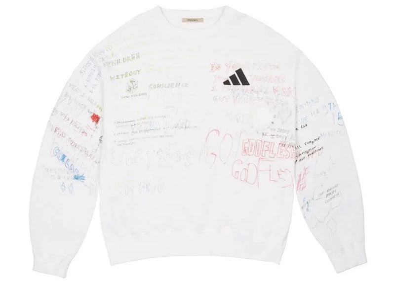 The Yeezy Scribble Hand Drawn Crewneck Arctic is now available at Side Kicks!